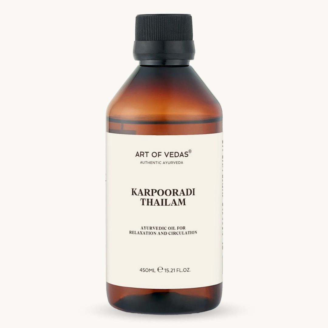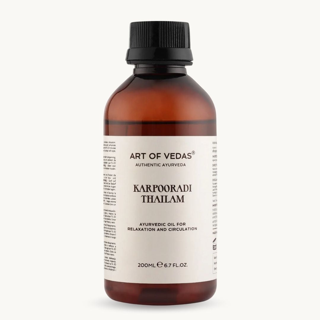 Unit price €0,10 per mlKarpooradi Thailam is a traditional Ayurvedic oil crafted by experts to provide relief from pain and inflammation. Infused with the natural goodness of camphor and other herbal ingredients, it is particularly effective in alleviating muscle stiffness, joint pain, and respiratory conditions. Its warming properties promote circulation and aid in the recovery of aching muscles. Karpooradi Thailam is also used for its soothing effects on the chest when massaged gently, making it ideal for enhancing respiratory comfort. This oil is a must-have for those seeking natural solutions for pain relief and respiratory health.